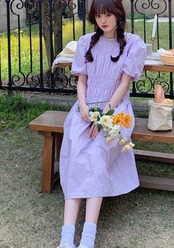 shirring puffsleeve long ONE PIECE